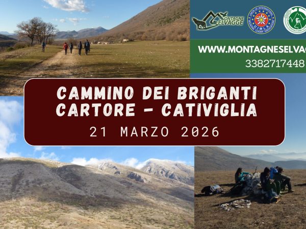 Sabato 21 marzo Escursione guidata sul Cammino dei Briganti, da Cartore al Monte Cativiglia All’interno delle nostre escursioni in Abruzzo, organizziamo questa splendida esperienza, disponibile sia